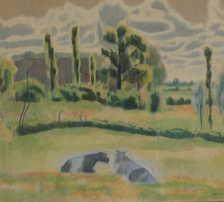 Prof. Kriete war von 1932 - 41 wohnhaft in Worpswede. Hier fühlte er sich der Landschaft und Tradition eng verbunden. Entsprechend widmete er sich in seinem Werk immer wieder den typischen Worpsweder Motiven – den Moorlandschaften, Bauern und Torfstechern und der stillen Weite und Flüsse der norddeutschen Natur.